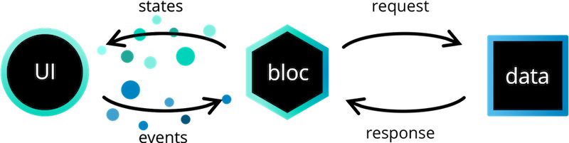 In the schematic representation above, the naming for Bloc can be replaced by the state. The operation remains the same. So, in the cubit, the logic is handled. Here, the request to a service or the like is also called. While making a request and or logic, the state can change. From the Cubit, the state is called. When calling the state, a signal is sent to the UI that the state has changed. Based on this, the UI can be updated.